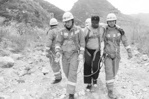 四驴友被困河北怀来山区一人伤 官兵紧贴峭壁营救