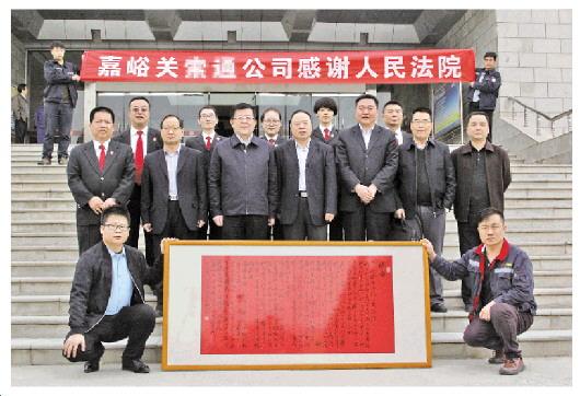4月6日,执行申请人嘉峪关某公司为嘉峪关中院送去了装裱一新的感谢信,交给该院院长茹作勋。