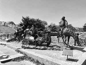 昨天中午,北京晨报记者来到卢沟桥旅游文化景区,从入口进去后的北侧,伫立有一些纪念雕塑,有大炮、骆驼和马等形象,而雕塑旁立着“禁止攀爬,违者罚款”的牌子,但显然牌子没有起到丝毫的警示作用,仍有游客爬到雕塑上合影,铜骆驼身上已经被磨得光亮(上图)。此外,在入口处向北数十米的地方,就是卢沟桥景区的出口,记者观察发现,真有多位游客直接从出口进入,有人骑着车,有人遛着狗,而出口处设有一个小岗亭,里面有一位工作人员正在低头玩着手机。