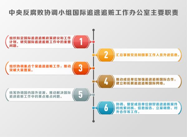 中央反腐败协调小组国际追逃追赃工作办公室主要职责。