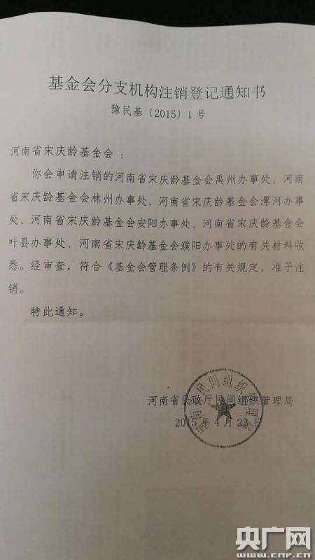河南省宋庆龄基金会叶县办事处在2015年4月23日注销