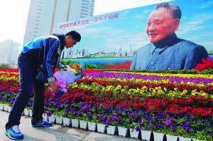 阳光洒鹏城,鲜花赠伟人。昨日是我国改革开放总设计师邓小平同志逝世11周年纪念日,今年又恰逢改革开放30周年,深圳这座在小平同志关爱下崛起的城市,对老人怀有特殊的感情。莲花山小平铜像下,红岭路口小平画像前,自发前来悼念缅怀伟人的市民游客络绎不绝。