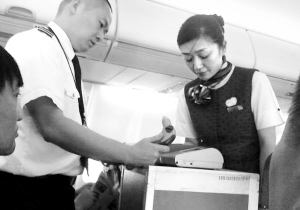 昨晚8:20,距离CA4156次航班起飞还有10分钟,乌鲁木齐机场安保人员和空姐,拿着一个小仪器,开始对飞机上的乘客的手掌虎口进行检查。“一个小仪器,空姐解释可以测出是否接触过爆炸物。”徐鹏在课堂内外杂志社工作,7月28日出差到乌鲁木齐,准备回渝。