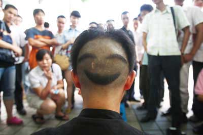 “世界上真的还有卖笑的哇?新鲜!”路人很快围拢过来,七嘴八舌地议论着横幅上的内容以及郑余剃成笑脸的发型,但几乎无人“消费”。看到生意这么秋,郑余索性免费表演: “我先送几个笑请大家欣赏嘛,想买的再商量。”随后,他调整了一下面部表情便开始夸张地大笑,“这是狂笑,下面是奸笑……”郑余的表演惹得围观群众忍俊不禁,可是当郑余递出手中的“菜单”时,有几个年轻女孩子却直接掉头跑开。就这样,直到下午5时过,郑余仍未成功做出一单生意。
