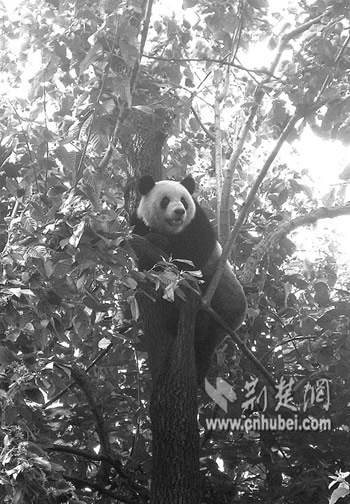 昨日下午,饲养员杨杰在给卧龙来汉大熊猫“希望”和“伟伟”喂苹果时,少给了“伟伟”一块,这让“伟伟”很不高兴。为发泄对饲养员的不满,一气之下爬上高达十几米的大树,让饲养员惊出一身冷汗。经过饲养员近半小时的劝导,“伟伟”才安全爬回地面。(通讯员 何志华 付汉明 记者 江卉 摄)