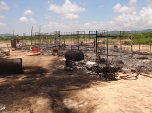腰果场工棚已被烧成废墟。