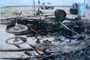 摩托车被烧毁。