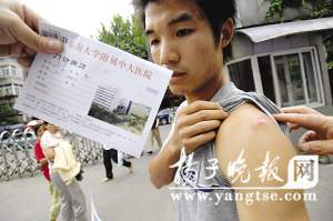 肇事者康先生称,自己和女友都在加拿大上学,这次是回来度假的,中午两人因为琐事起了争执,闹得一肚子不愉快,饭也没吃好,女友愤然出门,他跟着出去开车,女友不愿跟他走,就这样边吵边开车,才出停车场就猛踩了一脚油门,撞人后因周围都是自行车,他的“奔驰”速度降不下来,只好开车到前面“掉了个头”,并非肇事逃逸。高同学称在交警五大队做完笔录后回家,临走时,康先生称已经花了500多元的医药费,请高同学签字写个借据,他没答应。 (记者 范晓林 文/摄)