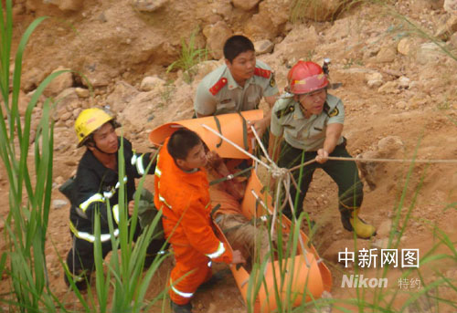 中新网韶关9月5日电(冯昶 廖志锋 李昌卢)在广东省道244线韶关新丰县路段,一辆拖拉机坠落数十米深的悬崖并拦腰折断。广东新丰县消防中队出动2辆消防车和13名指战员,经过近两个小时的紧急营救,终将被困司机救起。