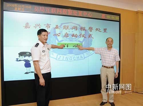 中新网嘉兴9月5日电(袁爽 田舍郎 陈小奇)9月5日晚,网民小张习惯地打开嘉兴在线网站,忽然见到电脑界面上出现两位可爱的卡通警察,他们眨巴着双眸告诉小张,今后需要报警求助找他们就行。当天上午,浙江嘉兴市互联网报警处置中心正式启动,嘉兴市委常委、市委宣传部部长武靓亮,嘉兴市委常委、市公安局局长梁群出席仪式并共同按下启动钮。