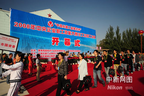 9月17日,2008年中央企业职工技能大赛化工总控工决赛在甘肃举行,图为决赛开幕式。殷春永 摄