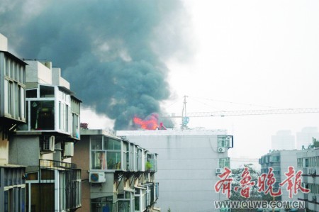 因为自己在五楼,着火的是一栋六层楼房,楼顶的火势刘先生看得清清楚楚。“黑乎乎的烟冒出几十米高,一团大火也直往上蹿,楼顶通红一片,看着真是吓人。楼顶放着什么东西能引来这么大的火?”刘先生给本报打来电话,着急的同时也觉得很奇怪。