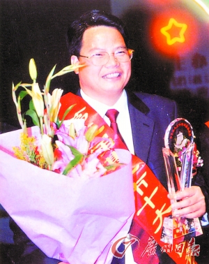黄兆峦曾有多种荣誉加身,图为其正在接受湛江市“十大杰出青年”颁奖。