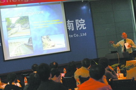 昨日,由美国土木工程学会、中国岩石力学与工程学会共同主办的“成都地震生命线座谈会”在成都中铁西南科学研究院顺利召开,来自中美的权威地质专家,就地震预测、监测,以及地震后通讯、交通、电力等生命线系统的修复、重建问题进行研讨。中国矿业大学(北京)力学与建筑工程学院院长何满潮现场演示了汶川地震物理模拟动态实验,认为通过模拟实验可以分析出地震前板块运动曲线有一定不寻常的规律,相信之后通过地震预测、监测系统的研制及完善,在相应的断层安放监测仪器,可以成功在地震前实施较为准确的预报。