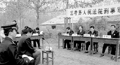 2008年10月10日,兰考县城关乡王庄村一座大院内,一起普通交通肇事案现场庭审开始。