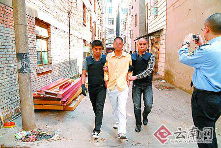 上午8点49分,昆明市公安局五华分局马村派出所接到市局110指令,下马村301号4楼,一男子劫持一女子欲将其杀害。民警迅速赶到现场,见男子反锁大门,拒绝开门的同时,情绪比较激动:“我就是要杀了这个贱人,你们不要管我!”他还嚷着如果民警进屋,就要杀死怀中女子。民警通过出租房门头的窗户往里看,只见一名戴眼镜的男子一手勒住一女子的脖子,另一只手拿着一把长20多厘米的菜刀架在女子脖子上。女子面色惨白,全身瑟瑟发抖,一脸恐惧。