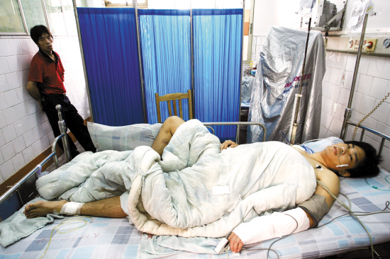 当时负责抬张茂上救护车的员工称,张腹部的刀伤非常深,员工们赶到的时候,其肠子都流了出来,“现在情况也不容乐观”。