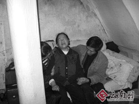 记者在老远处就看到,在县第一小学对面的东正街中段,有一个用黑布搭建的灵台,灵台上方悬挂着白色花笼。“我的儿呀,妈跟你说话呀,你答应一声呀……”“老公,你走了,我和孩子怎么办呀?”死者的母亲、媳妇、弟妹等家属痛不欲生,前来吊唁的亲朋神情凝重……