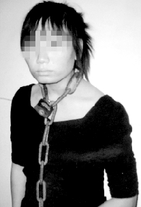 不一会儿,孙晓健带来一个女孩,只见女孩的脖子上套着一根铁链子,她双手抱着铁链,浑身发抖,两眼含泪,一言不发。