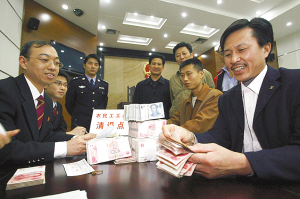 昨天下午2时许,运钞车押运着50多万元现金和300多万元支票,开进市一中院。法院工作人员将10余名农民工代表,召集到法庭内逐个发放工资。