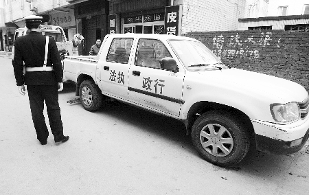 昨日,经郑州市特巡警三大队民警查实,这是一辆“山寨版”执法车,车主是郑州市孙八寨村街管会主任,平时干的就是维护市容市貌的活。