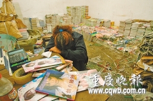 渝中区文化执法大队人员介绍,昨上午9时许,执法人员接到群众举报,称在大坪单巷子154号一租赁房内有一个专门批发淫秽书籍的窝点。12时许,执法人员将门敲开,屋内只有一40岁左右的中年女子,执法人员介绍完身份后,女子明白过来,当即趴在屋内一堆书上大哭,之后便借口上厕所企图溜走。