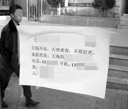 追债者贴"大字报"诅咒欠债人 市民称低俗(图)
