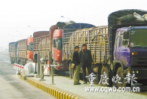 上周六凌晨6时许,5辆满载电缆的货车驶到市高发司中渝营运分公司南川收费站。第1辆车的刘姓司机告诉收费员,货车属运输救灾物资车队,这次是把汶川灾区的一批规格的电缆,退回南川生产厂。言毕,刘掏出盖有我市民政、交委、市公安局和市政委鲜章的通行证——重庆市救灾物资车辆通行证。