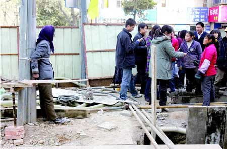 昨日上午9时30分,工地附近围了许多群众,一位老先生上前指责,这种私自捆人的行为触犯了法律,要求工地工作人员给该妇女松绑,一岳姓女工承认,人是她拿电线捆的,要等老板来处理。“为什么不送派出所?”那位老先生质问道,此时周围的群众开始议论纷纷。而岳姓女工一直在说,“老板不来,就不能放人。”
