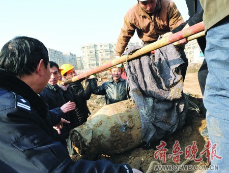 听说挖掘机刨出个“煤气罐”,12月13日晚11点,济南济安街附近一建筑工地上的张师傅跑去看热闹。这“煤气罐”挺怪:两头尖,中间胖。有人猜测:“不会是炸弹吧!”民警赶来查看后,现场竖起牌子:“危险!”