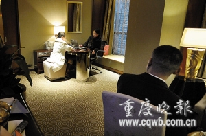 下午3点半,记者向接听电话的女子表明身份。一位姓吴的男子将记者请进酒店8楼一个房间。