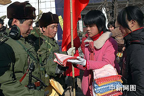 22日上午,平遥县委政府等班子领导,来到 当地洪善镇慰问途经平遥的晋中军分区“冬训-08”拉练部队官兵,并送去慰问品。作 者:裴旭亮