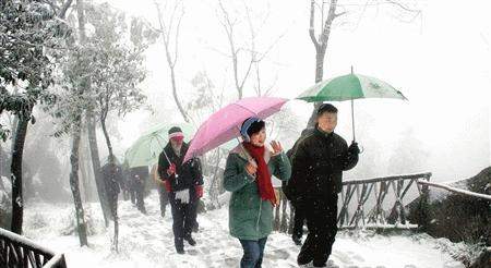 昨日清晨,川东华蓥山区高山地带普降瑞雪,山顶银装素裹。游客纷纷上山玩雪,大呼过瘾。这也是今冬以来广安地区第一场雪。