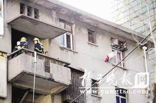 昨天下午2点半钟左右,在南京下关区铁路北街新民村33号住宅楼前围了许多群众,警方在通往居民楼的通道外拉起了警戒线,禁止无关人员进入,在警戒线内的地上放着一瓶液化气,此时消防队员仍在来回穿梭地忙碌着。住在四楼的一位居民称,着火的是6楼的一户人家,好像是有人纵火。如果不是5楼的一位大妈及时发现大声喊叫,大家还都不知道。