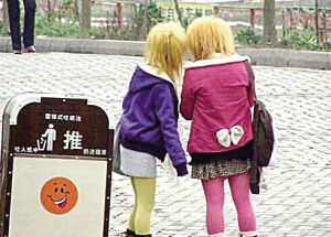 在帖子中,记者看到两个很年轻的女孩手挽手正走在街头。两人都是一头金发,且呈蓬松状。其中一个女孩身穿桃红色外衣、豹纹短裙,配桃红色袜子,另一名女孩则是艳丽的黄色连裤袜。发帖的网友“肥猫的马甲”称,这是他大年三十那天去洋人街拍到的,女孩很年轻,属于“90后”一代。当时确实把他雷倒了,“打扮成这个样子,这些娃儿疯了吗?”