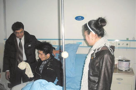 2月2日,都江堰心理志愿者刘猛等人到病房看望了母广翔,刘猛捐了1000元医疗费救急。次日一大早,刘猛等再次造访病房,这次他们带去的不是捐款,而是一次实实在在的“心理访谈”。