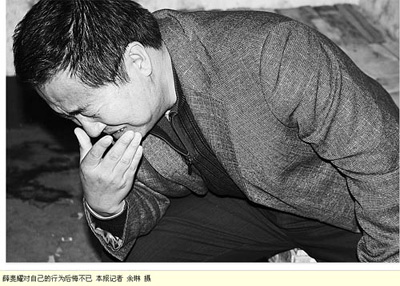 昨日下午5时30分,记者在榆林市公安局交警二大队留置室见到了薛斐耀,见到记者,他双手抱头默默流下眼泪。