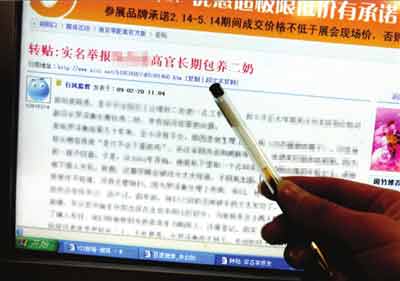 昨天11点03分,西祠网站“记者的家”论坛中,网民“行风监督”提交了一篇名为《转帖:实名举报高官长期包养二奶》的帖子。