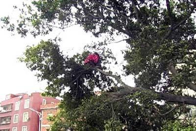 树枝离地三四米,地上都是来来往往的车流,摔下来,肯定出大事。谢先生一想,就报了警。