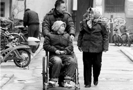 街坊们经常用各种办法帮助这个家:女儿的学费是邻居们凑的,经常给他们送衣服、送饭,为了能让曹青云站起来,还帮他们申请了全额低保,拉到赞助单位帮她定做了一个轮椅。