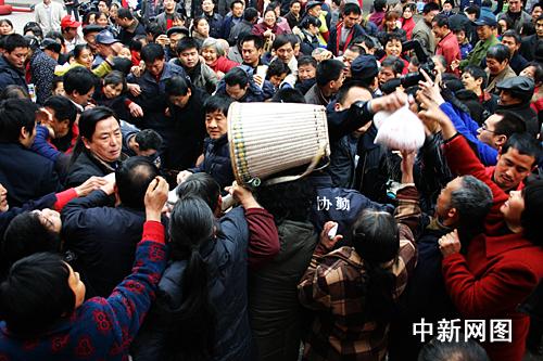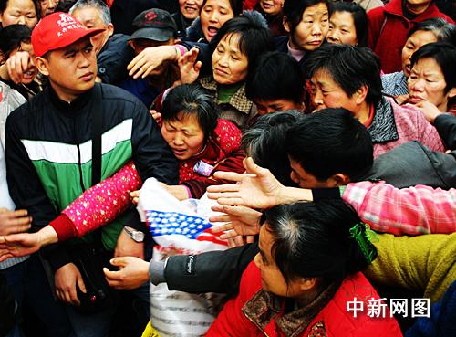 中新网重庆3月4日电 (姜诚意)为了6元钱一袋的化肥,重庆市九龙坡区白市驿镇4日上演人群疯狂哄抢一幕。