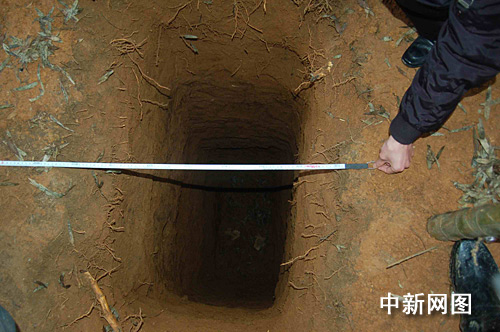 随后,4人轮流挖土,盗墓专业的他们,很快便挖出一个长1.2米、宽0.7米的洞口,一直挖到凌晨,墓洞已经挖到距离地面3米左右。