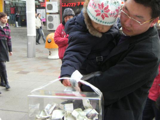 “我和我的好姐妹王静一起,在青岛市区准备组织这次捐款活动。”刘冰心说,“开始的时候由于城管管理的比较严格,所以只能通过市北区红十字会协调,最后允许我们的捐款活动可以组织两天。”