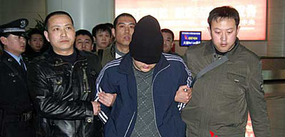 据了解,3月13日晚上,由“3.08”特大抢劫杀人案专案指挥部派遣的13名办案民警,乘坐火车赶赴满洲里。14日上午,民警们从满洲里公安局看守所将这3名犯罪嫌疑人押出,乘坐飞机押解回呼。当日16时许,记者来到呼和浩特白塔国际机场。记者注意到,3名犯罪嫌疑人的头上都被蒙上了头套,无法看出他们的长相。这3人的个子并不高,其中1人比较胖,另两人都较瘦小,能够看得出他们的年龄并不大。虽然他们打扮成学生模样,但是他们的穿着还是引起了大家关注,因为他们都身着崭新的阿迪达斯牌的上衣和裤子,脚上穿的也是阿迪达斯牌的鞋子。据民警讲,这衣服是他们逃亡到北京后用抢劫到手的钱购买的。