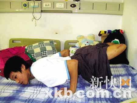就是在这样困难的姿势下,安安还伸手帮助旁边的女同学梁欢,让她不再被压住,梁欢后来平安得救。而安安自己却屈着身子,最后腿被压至坏死,次日下午获救以后,等待他的只能是截肢。