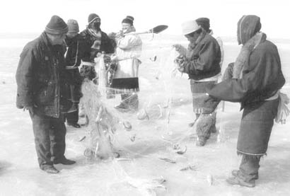 但是,在冬季,村民们可以骑着摩托车到冰面上收缴渔网,如今湖面已经慢慢解冻,收网变得越来越危险。村民们看着湖面上千张的渔网,真的只有无奈地“望网兴叹”了。用他们的话说,“每天不吃饭,收都收不完”。