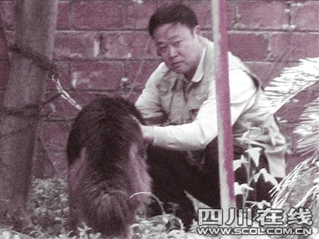 在小区偏僻的一角,刘先生将藏獒拴在了树上,人们在警戒线外远远围观。刘先生在爱犬身边蹲了下来,一遍又一遍用手轻抚它的背,不断地对它说话。但由于相隔太远,现场没有人听见他说什么。好几分钟后,他才一抹眼泪站了起来……“砰——”约10米之外高大威猛的藏獒倒了下去。