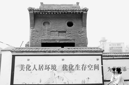 工地一位负责人讲,考虑到这座门牌楼已经有上百年的历史,就没有随着城中村改造整体拆除,暂时保护起来。“‘囧’?我还没发现,难怪有很多人来这里转悠。”他说,最近很多年轻人来看这座门牌楼,还有好多人拿着相机拍照。(文/图 记者 李卓洋)