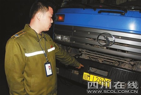 下午5时左右,一辆车牌为川M12885的大货车缓缓驶过,这辆大货车装着满满一车煤炭渣,“这辆货车装载的货物太多,很可能严重超限!”任林、邓喆等人走上前去依法检查。邓喆手势示意该车停靠到路边接受检查。停车后,驾驶员走下车来。该驾驶员名叫刘荣勇,邓喆要求其出示“道路运输证”、“从业资格证”等,询问不到2分钟,刘荣勇就转身登上驾驶室,发动车辆准备一走了之。
