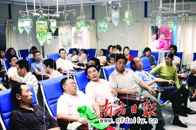 在坪地医院的急诊室里,五六十名工人正在输液。向先生对记者说,他们被送过来之后,医生只是给他们输了液,三个小时了也没有人来给他们做一个检查。“医生说在给我们输的液体里边加了药,但是都没有检查,你加的是什么药?”文先生告诉记者,还有几十个人被送到龙岗中心医院。